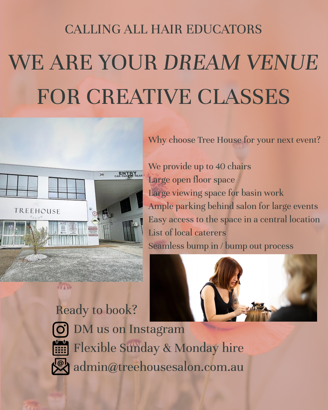 Want to see it for yourself? Get in touch today to book your venue hire at Tree House Salon.