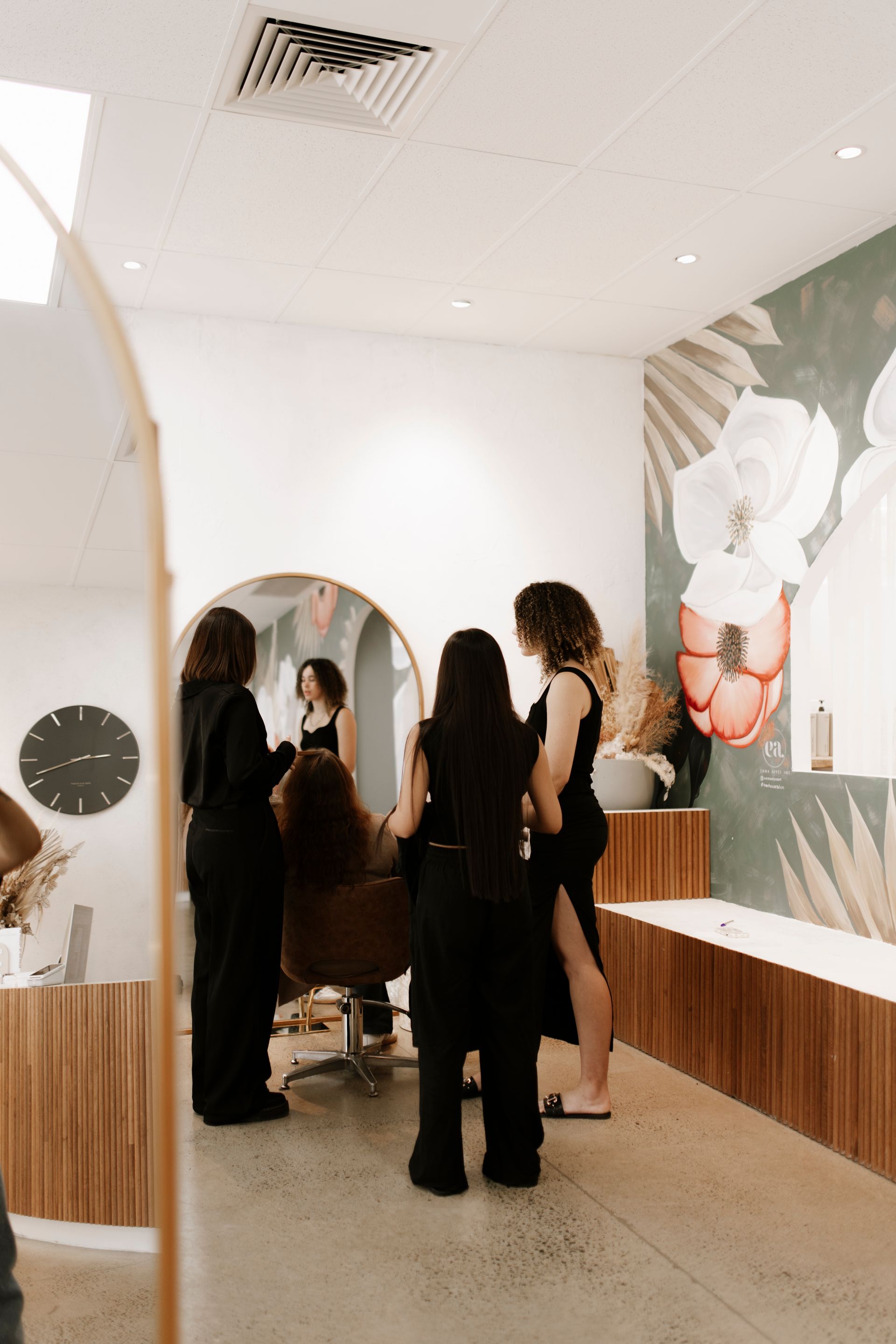 Looking for a creative, light-filled space for your next event or shoot? Our modern open-plan salon is available for venue hire, ideal for workshops, education sessions or content creation. The aesthetic is neutral and fresh, with natural light, greenery, and a welcoming atmosphere that photographs beautifully.